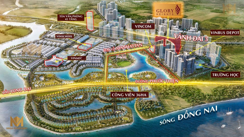 Glory Heights: Vị trí trung tâm, đối diện Vincom Mega Mall lớn nhất TP.HCM, gần công viên 36ha, tiện lợi khai thác cho thuê, tiện ích nội khu độc đáo như hồ bơi Malibu Resort, công viên chủ đề Jura Park.